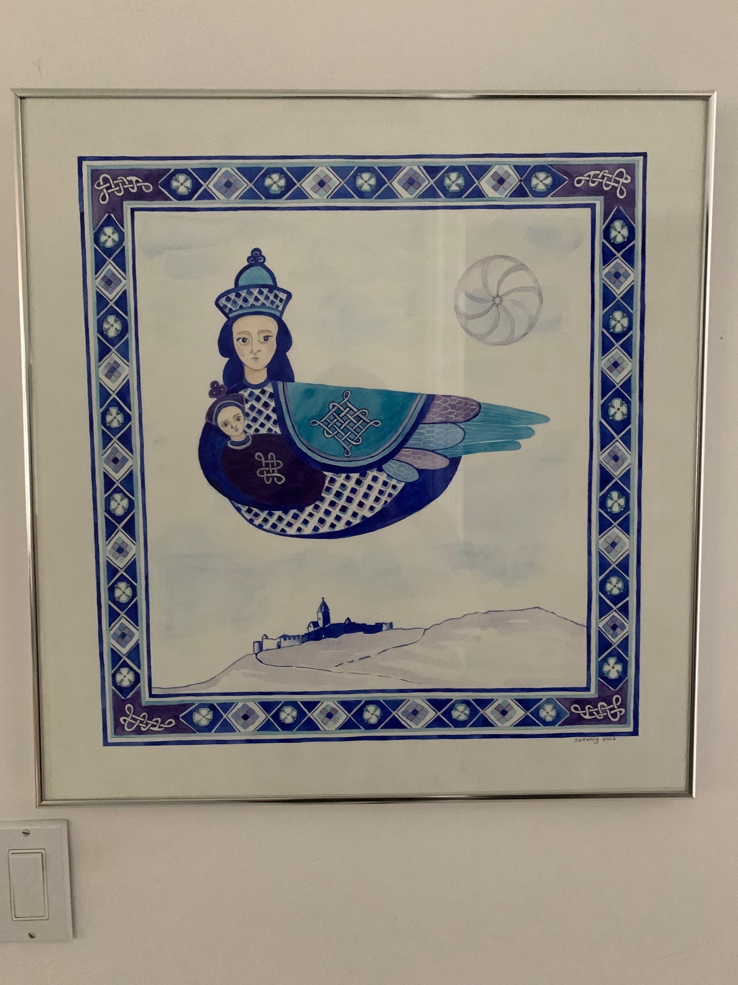 Her main influence was Armenian art, especially medieval manuscripts. Many of her paintings include a mythological creature that combines the body of a bird and the head of a human, known as a hushkaparik. Sandra considered these creatures a representation of the soul.